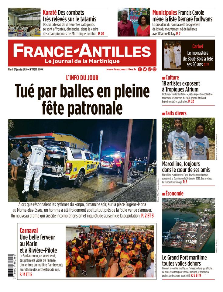Une fête patronale à la fin tragique... Dimanche soir, la fête du Morne-des-Esses, à Sainte-Marie, a été endeuillée par la mort d’un homme de 32 ans, originaire du Gros-Morne, touché par balles....